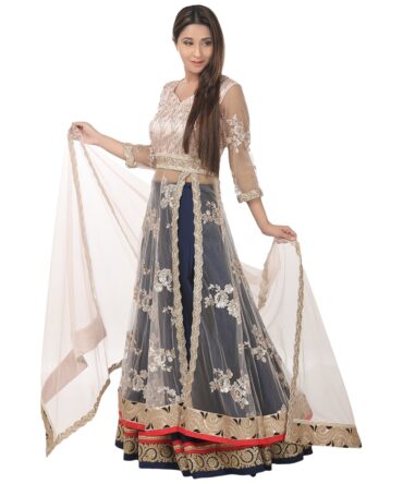 Chunri Baby Pink & Navy Blue Sequined & Zari Lehenga, Choli & Dupatta Set