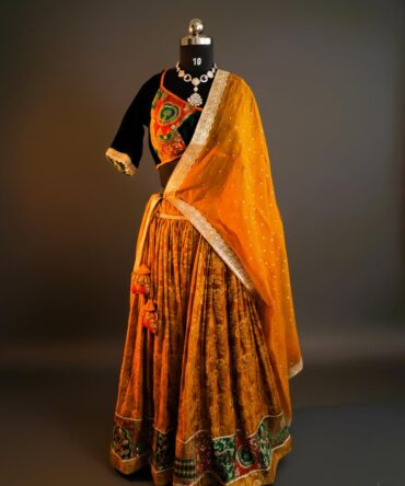 Designer Women’s Lehenga Choli Set with Embroidered Blouse, Mustard banarasi lehenga