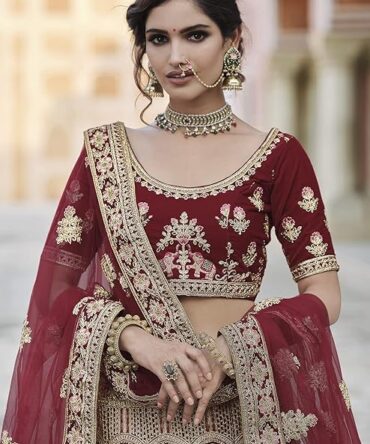 Dhanlaxmi Heavy Work Maroon Color Velvet Fabric Lehenga Choli For Women