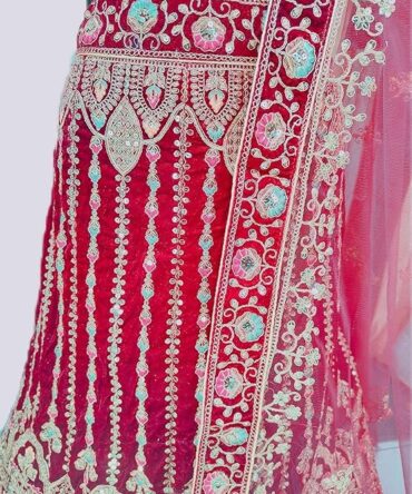 DHANLAXMI EXPORT Bridal Lehenga Choli Set with Embroidered Velvet Blouse, Red Net Dupatta, Heavy Zari Work, Traditional