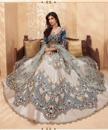 Designer Lehenga Choli with Net Dupatta, Blue and Grey Embroidered, Traditional dress for women and girls