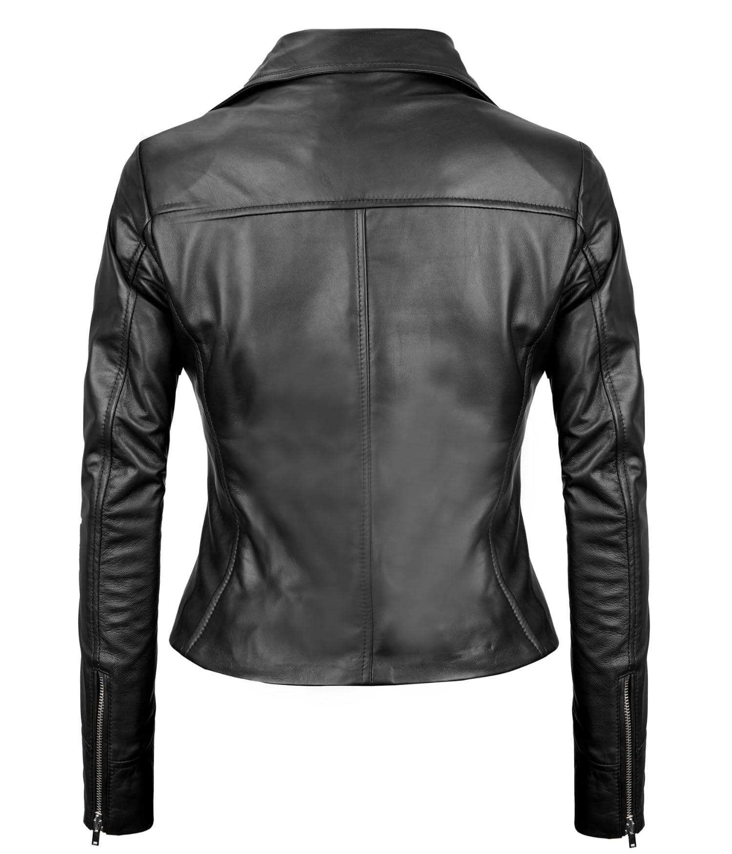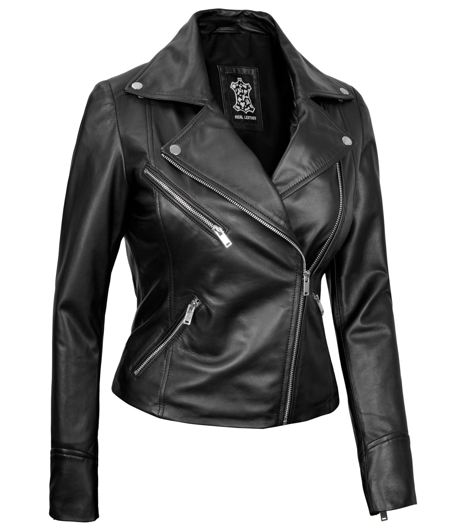 - Expert Craftsmanship: Crafted from 100% real lambskin leather, this asymmetrical lightweight black jacket for women offers unmatched durability and comfort.