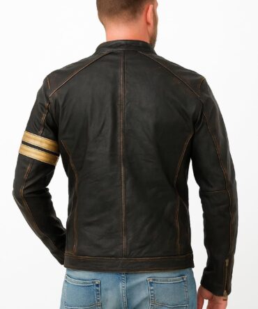 NM-Fashions Mens Distressed Black Leather Jacket Biker Retro Cafe Racer Vintage Leather, Distressed Black, X-Large