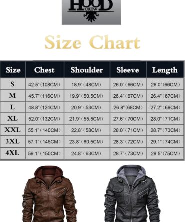 Hood Crew Men’s Casual Stand Collar PU Faux Leather Zip-Up Motorcycle Bomber Jacket With a Removable Hood Brown 4XL